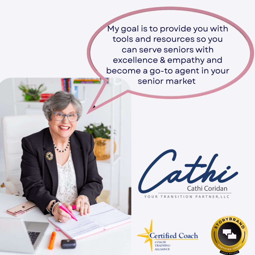 Cathi focuses on the quality of the senior client experience. As a StoryBrand Certified Coach, she helps agents refine and clarify their messaging so they connect with their clients and referral partners with the right words in the right places.